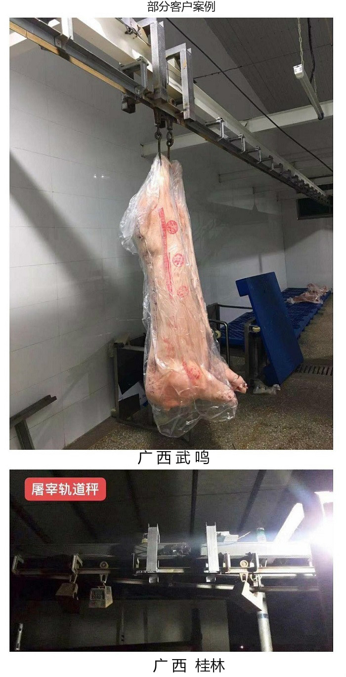 我們公司銷售的 生宰殺豬羊滑動屠宰秤,防潮豬羊肉屠宰稱 簡稱( 屠宰秤,軌道秤,滑軌秤) 屠宰秤支持在工廠中稱量宰殺后的豬羊牛等動物,直接掛在鉤子上,滑動稱重,減少人工搬運的時間。想購買軌道秤的客戶請致電與我們進行購買!